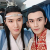 Description: a small teal gremlin with cateye glasses and a cup of coffee